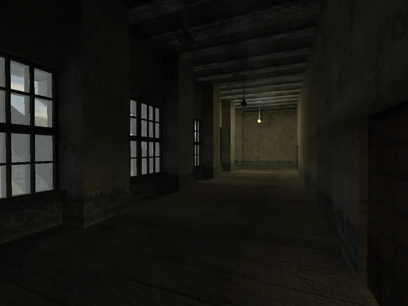 Карта de_ghostwood для CS 1.6 оригинальная и впечатляющая по-своему карта, на которой представлено громадное по размерам и этажности, весьма мрачное здание, вполне подходящее для кровопролитной битвы между террами и контртеррами. Отлично сделаны лестничные пролеты и полупустые залы, в которых размещаются некие непонятные экспонаты с орнаментами, длинные коридоры и почему-то классные комнаты с демонстрационной доской.