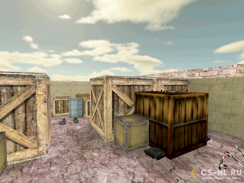 Карта de_noji для CS 1.6 очень хорошая локация с несколько упрощенным оформлением и симметричной конфигурацией. На ней можно на респаунах обзавестись автоматическим стрелковым оружием, гранатами и бронежилетами. На полигоне в огромном количестве расставлены бочки и ящики различного размера. Проходы между ними образуют сплошной лабиринт на территории карты. Легко не только дезориентироваться, но и столкнуться нос к носу со своим противником.